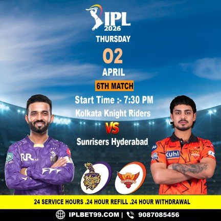 Kolkata Knight Riders vs Sunrisers Hyderabad, 6th match of IPL 2026, will be played today at Eden Gardens, Kolkata at 7:30 PM. This match is expected to deliver full entertainment for cricket fans. With Online Cricket ID | India’s Best Cricket ID Online in 5 Minutes, you can quickly access live match updates and stay connected with the game. The platform is designed to be fast, secure, and easy to use, giving users a smooth experience. Follow every moment, enjoy instant updates, and never miss any important action from this exciting IPL match.